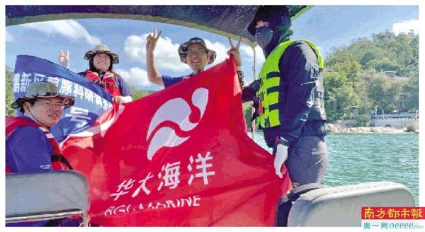 华大海洋科研人员在海上采集水样。