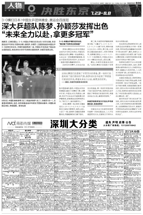 深大乒超队陈梦、孙颖莎发挥出色 “未来全力以赴,拿更多冠军”