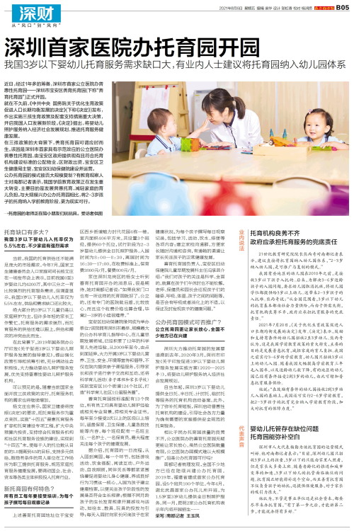 近日,经过1年多的筹备,深圳市首家公立医院办普惠性托育园——深圳市宝安区善育托育园(下称“善育托育园”)正式开园。就在不久前,《中共中央 国务院关于优化生育政策促进人口长期均衡发展的决定》(下称《