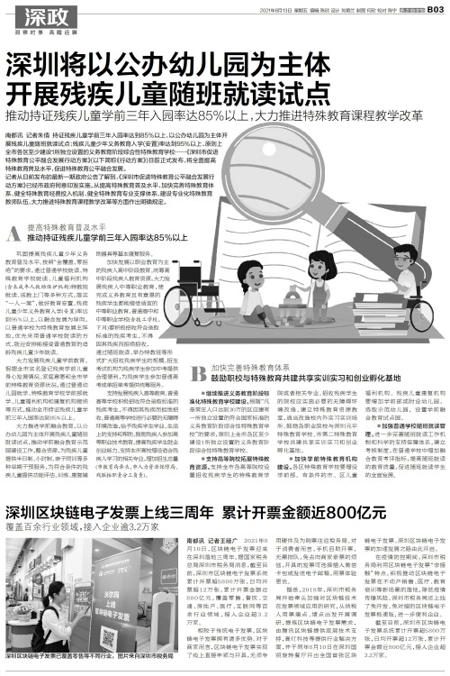 深圳将以公办幼儿园为主体 开展残疾儿童随班就读试点