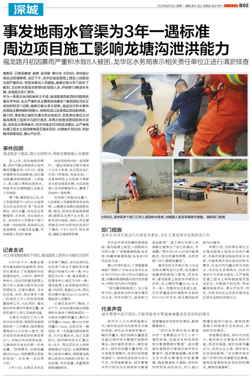 事发地雨水管渠为3年一遇标准 周边项目施工影响龙塘沟泄洪能力