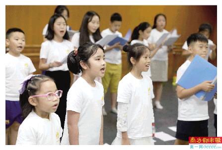 “高高的青山上萱草花开放……”8月18日下午,在华夏艺术中心的培训教室,孩子们聚精会神地跟随指挥老师的手势,饱含深情地唱着《萱草花》。看到有嘉宾来探班,孩子们兴奋劲儿一下子涌上来,特别是看到探班嘉宾带来的礼物时,难掩激动。