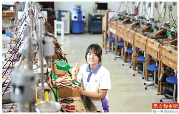 这是李如琳在2020年“全国珠宝制作职业技能竞赛”的贵金属首饰制作竞赛上的一幕。经过两个多小时,凭借熟练的操作、细致的雕刻、沉稳的心态,她脱颖而出,获得一等奖的好成绩。这个曾经大大咧咧、做事只有三分钟热度的小女孩,如今蜕变成了一名胆大心细、技术一流的能工巧匠。