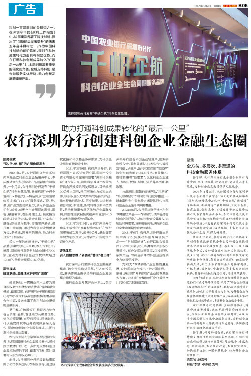 农行深圳分行创建科创企业金融生态圈