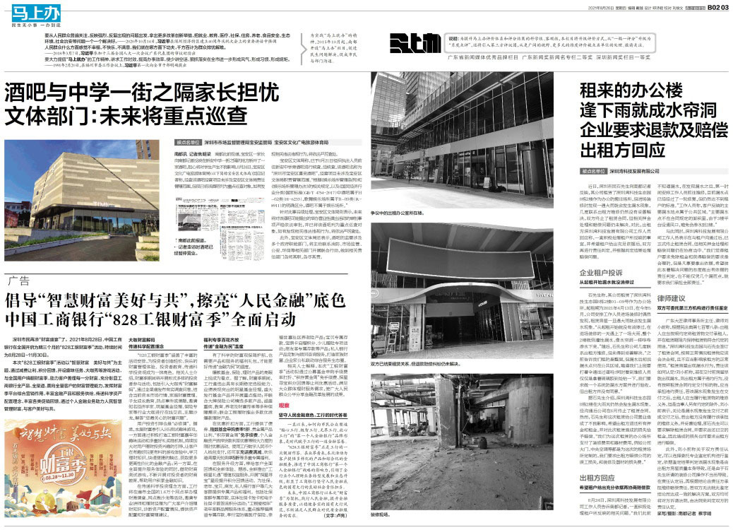 被点名单位 深圳湾科技发展有限公司 近日,深圳市民石先生向南都记者反映,其公司租赁了深圳湾科技生态园8栋2楼作为办公的搬迁场所,但进场装修时发现一遇大雨就会发生漏水现象,几度联系出租方维修仍