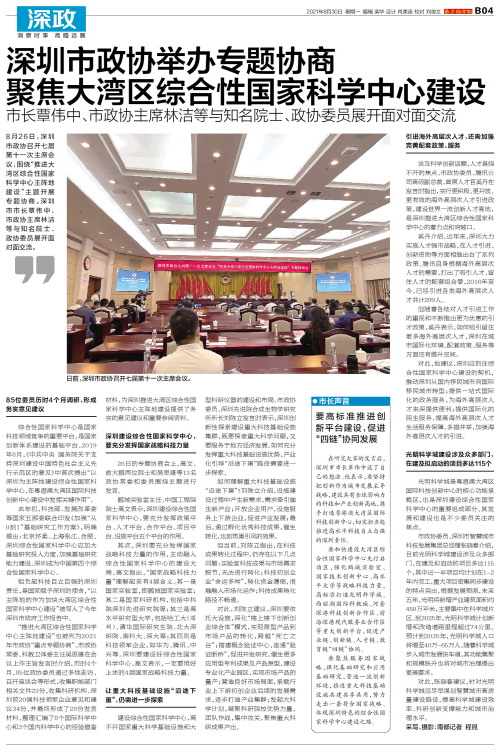 深圳市政协举办专题协商聚焦大湾区综合性国家科学中心建设