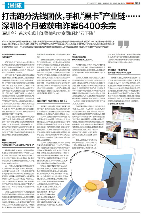 打击跑分洗钱团伙,手机“黑卡”产业链……深圳8个月破获电诈案6400余宗