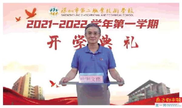 深圳二职校党委书记、校长欧阳文伟在开学典礼上发言。 校方供图