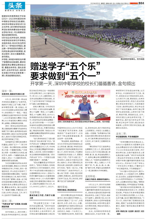 根据深圳市教育局关于印发《2021-2022学年度深圳市中等职业学校校历》的通知,深圳市中等职业学校9月1日正式开学。实行弹性学制或培养目标有特殊要求的中等职业学校(专业),可以根据实际情况安排教
