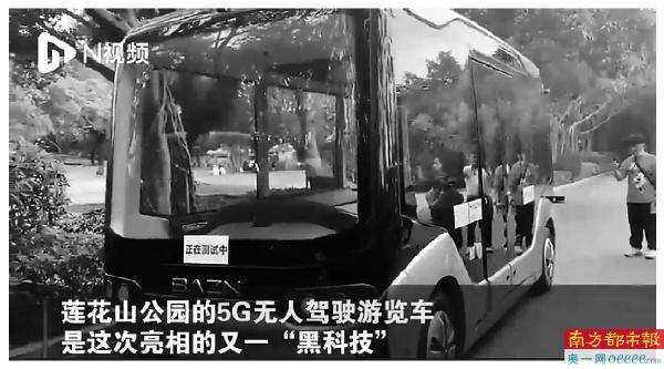 在莲花山公园测试运行的5G无人驾驶游览车。