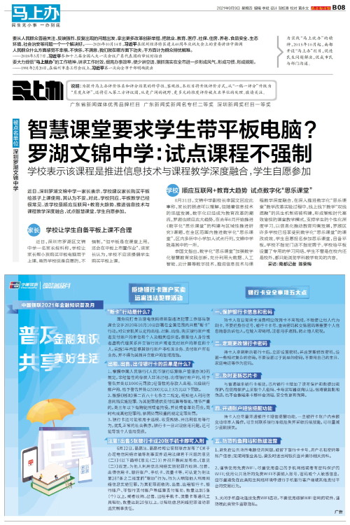 智慧课堂要求学生带平板电脑?罗湖文锦中学:试点课程不强制