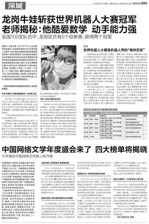 中国网络文学界的年度盛会落户深圳龙岗!近日,南都记者从深圳市龙岗区了解到,9月16日,“中国网络文学影响力榜发布仪式(2020年度)”将在龙岗文化中心大剧院举行。届时将正式揭晓2020年度“中国网
