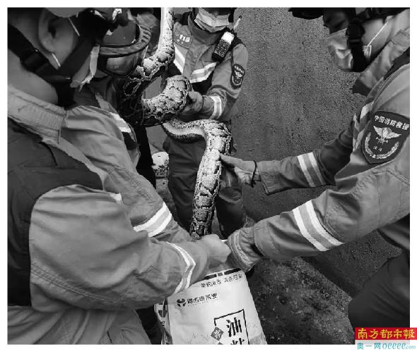 南都讯 记者曾海城 通讯员邹丽娜 龚欣 9月12日,深圳坪山区碧岭街道一家便利店、坪山街道丰田村分别来了两个“不速之客”,分别是2.5米长的蟒蛇和1米长的眼镜蛇。专业人员捕获后,市规划和自然资源局坪山管理局联系专家妥善处置。9月2日,又有一条金环蛇闯入坪山区中铁十二局生活区,被捕获并移交林业部门。