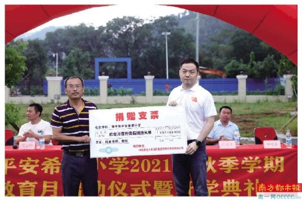 上午,平安人寿深圳分公司副总经理张楠和志愿者们来到堆子前平安希望小学,参加了一场特别的开学典礼。开学典礼上,平安人寿深圳分公司捐资11万余元,为学校翻新教室门窗、地面、添置楼顶校牌,为学生改善学习环境。