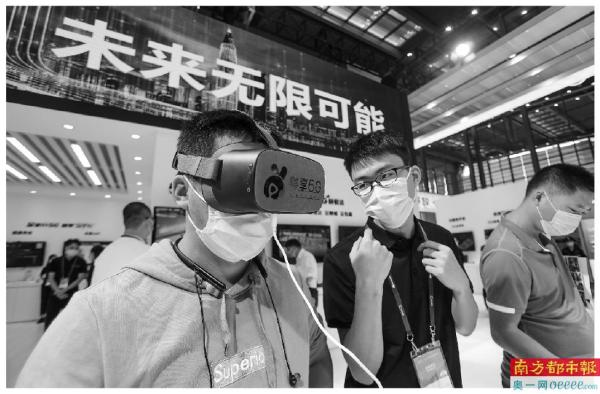 第22届高交会上,观众体验5G网络下的VR宣传片。 南方日报记者 朱洪波 摄