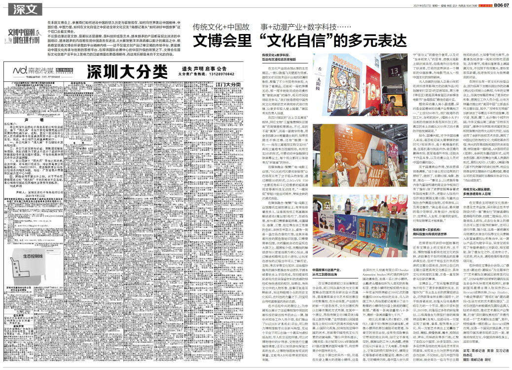 在本届文博会上,参展商们如何述说中国的悠久历史与崭新现在,如何向世界表达中国精神、中国价值、中国力量,如何在文化自信之中促进全球文化交流?南都记者从“如何讲好中国故事”这个切口去看文博会。不论是动