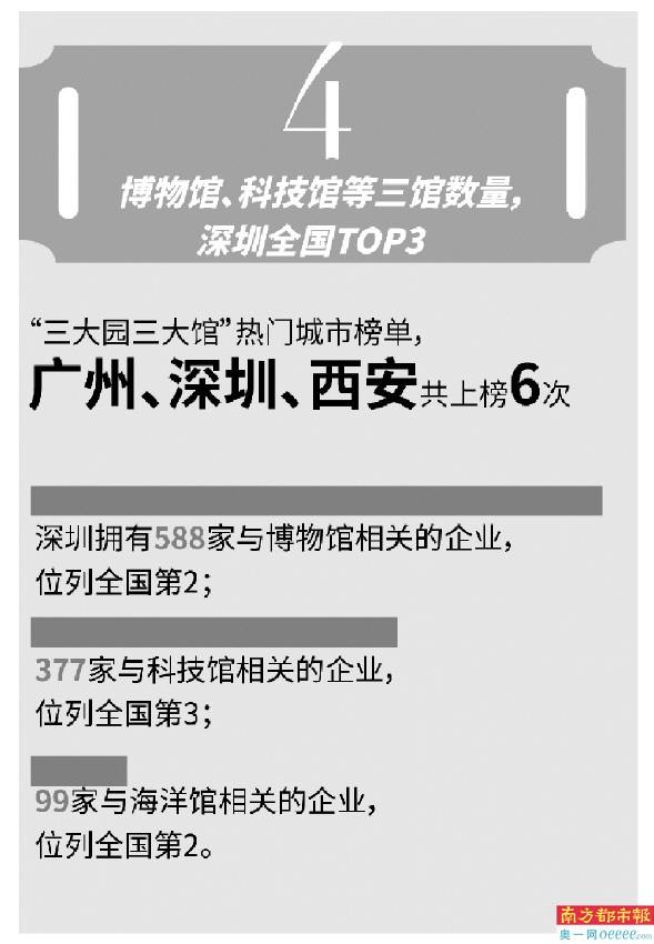 深圳拥有588家与博物馆相关的企业,位列全国第2;377家与科技馆相关的企业,位列全国第3;99家与海洋馆相关的企业,位列全国第2。