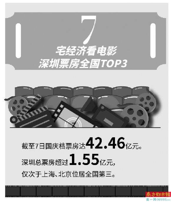 截至10月7日17时,2021年我国国庆档票房达42.46亿元。深圳影市总票房已超过1.55亿元,仅次于上海、北京位居全国第三。