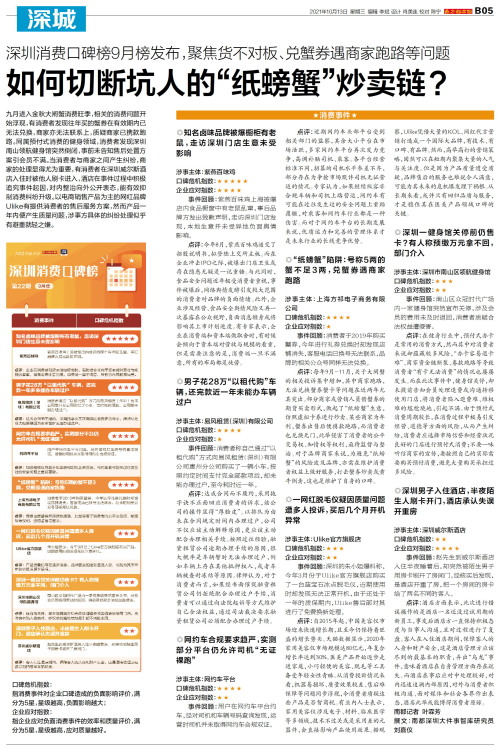 九月进入金秋大闸蟹消费旺季,相关的消费问题开始浮现,有消费者发现往年买的蟹券在有效期内已无法兑换,商家亦无法联系上,质疑商家已携款跑路。同属预付式消费的健身领域,消费者发现深圳南山领航健身馆突然倒