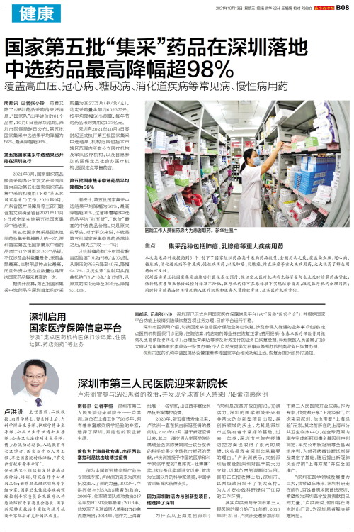 国家第五批“集采”药品在深圳落地 中选药品最高降幅超98%
