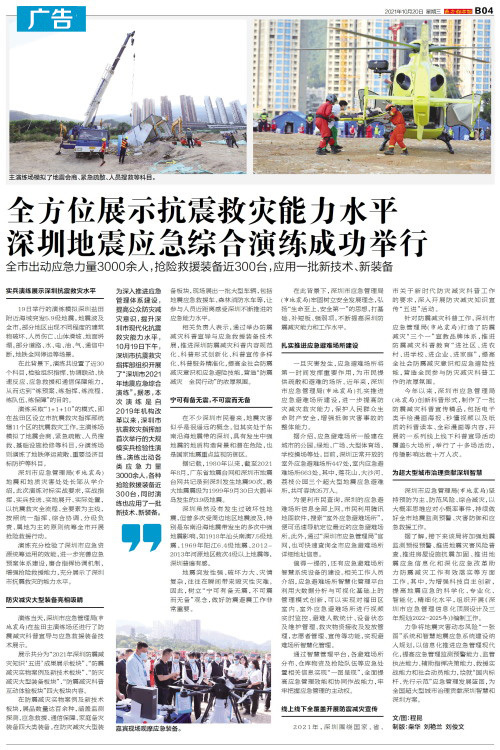为深入推进应急管理体系建设,提高公众防灾减灾意识,提升深圳市现代化抗震救灾能力水平,10月19日下午,深圳市抗震救灾指挥部组织开展了“深圳市2021年地震应急综合演练”。据悉,本次演练是自2019