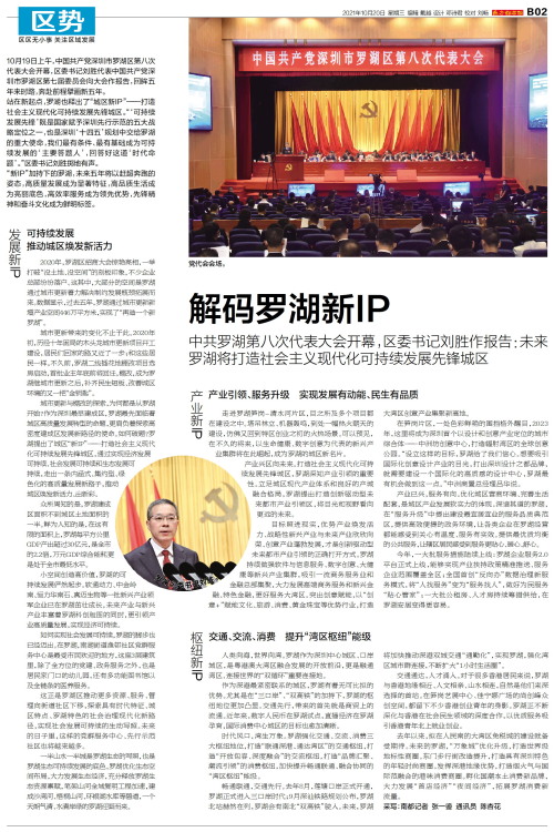 党代会会场。 罗湖区委书记刘胜。 10月19日上午,中国共产党深圳市罗湖区第八次代表大会开幕,区委书记刘胜代表中国共产党深圳市罗湖区第七届