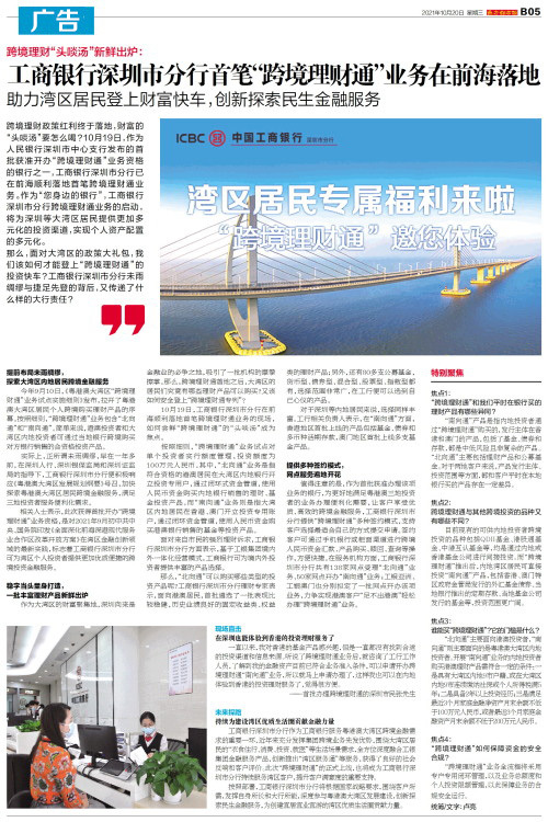 工商银行深圳市分行首笔“跨境理财通”业务在前海落地