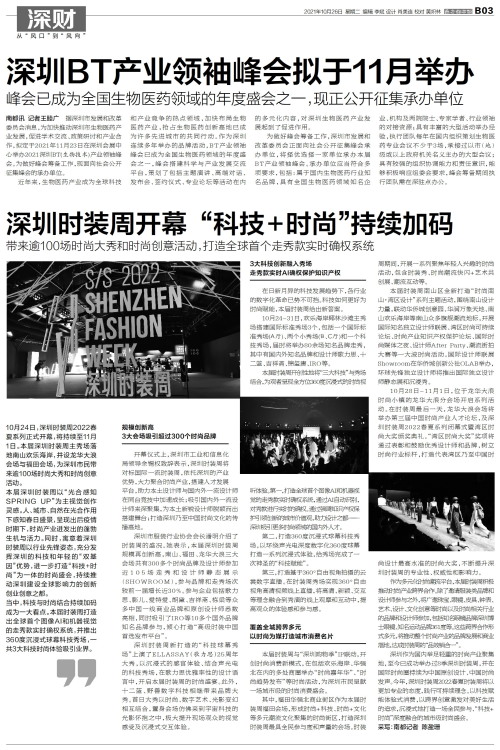 10月24日,深圳时装周2022春夏系列正式开幕,将持续至11月1日。本届深圳时装周主秀场落地南山欢乐海岸,并设龙华大浪会场与福田会场,为深圳市民带来逾100场时尚大秀和时尚创意活动。本届深圳时装