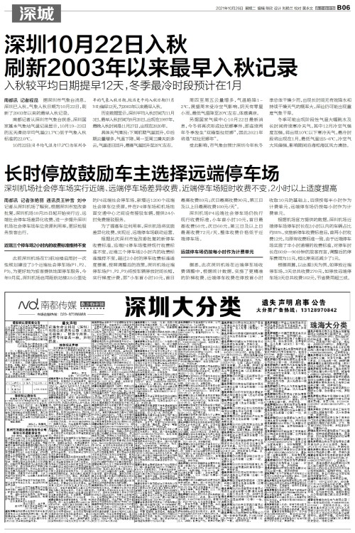 深圳10月22日入秋 刷新2003年以来最早入秋记录