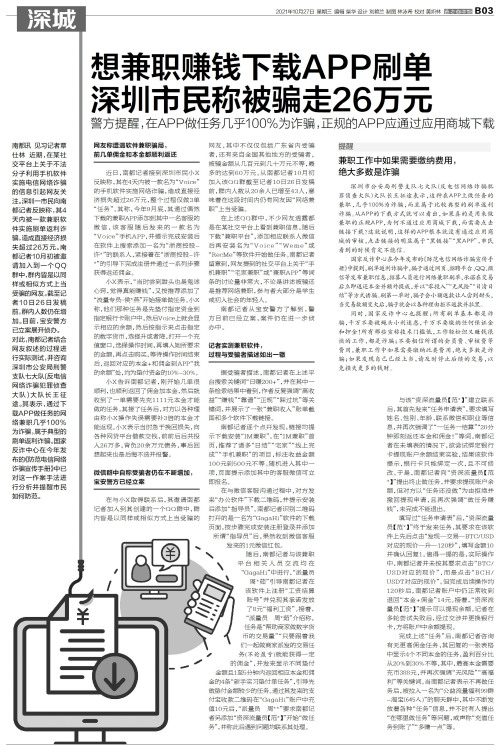 想兼职赚钱下载APP刷单 深圳市民称被骗走26万元