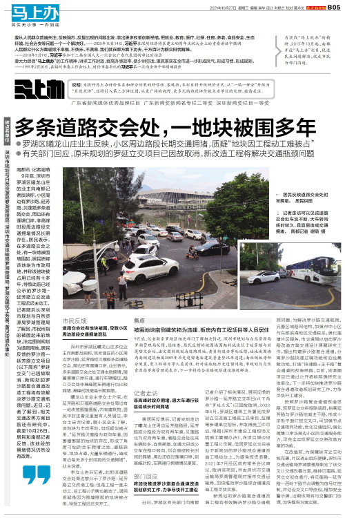 被点名单位 深圳市规划与自然资源局罗湖管理局、深圳市交通运输局罗湖管理局、罗湖区建筑工务署、黄贝街道办事处 南都讯 记者谢萌 9月底,深圳市罗湖区曦龙山庄的业主向南都记者反映称,小区周边有罗