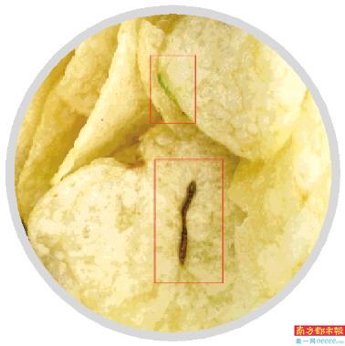 消费者:薯片中吃出条状发黑物质,部分薯片边缘发绿
