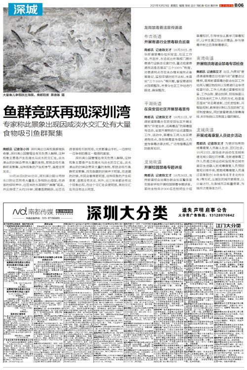 南都讯 记者张小玲 深圳湾近日再现鱼群竞跃奇景。深圳湾公园管理处有关负责人解释,这种现象主要是产生在海水与淡水的交汇处,淡水涌出的时候会带来大量的食物,那就会吸引鱼群前来聚集。这种现象的产生和季节、温度没有关系。