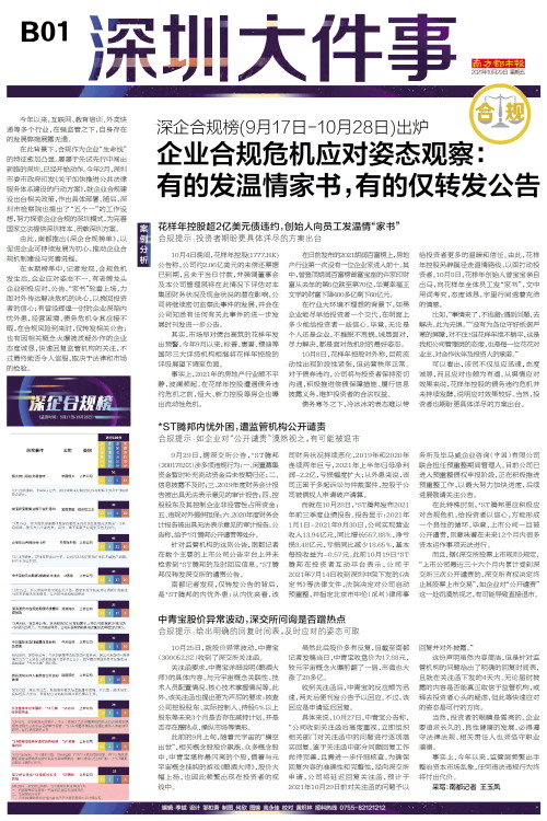 今年以来,互联网、教育培训、外卖快递等多个行业,在强监管之下,自身存在的发展弊端展露无遗。 在此背景下,合规作为企业“生命线”的特征愈加凸显。屡屡于先试先行中闯出新路的深圳,已经开始动作。今年2