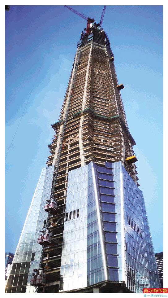 南都讯 记者黄璐 通讯员 陈心仪 覃楚涵 10月30日,随着最后一方混凝土的浇筑,深圳市在建第一高楼——城脉金融中心大厦项目顺利完成外框封顶。388米的高楼拔地而起,一块块钢结构相互连接,牢牢撑起了各个楼层。建筑工人们分布在不同的楼栋和作业区作业,有的在高空拼装,有的在焊接钢结构框架,一片火热的建设施工场面。