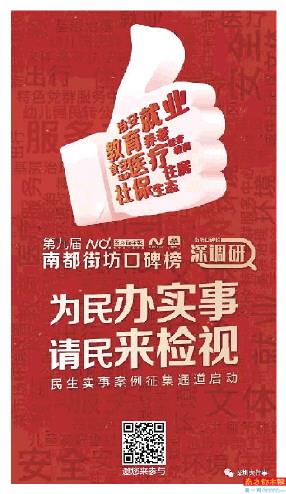 第九届南都街坊口碑榜开始线上征集百件民生实事,不管你是政府部门,还是企业,亦或是市民,都可自荐或者推荐案例。