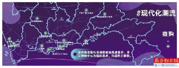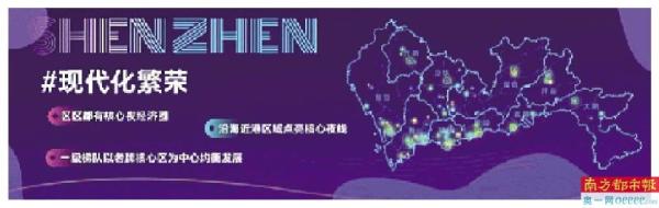 地图通过3大维度解析夜深圳的现代化魅力。分别是现代化繁荣、现代化潮流及现代化活力。