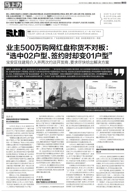 业主500万购网红盘称货不对板:“选中02户型、签约时却变01户型”