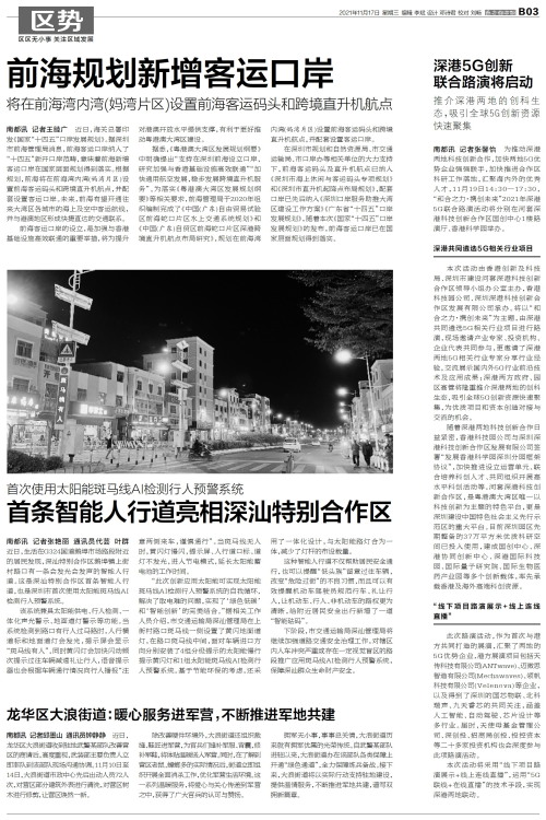 南都讯 记者张艳丽 通讯员代芸 叶群 近日,生活在G324国道鹅埠市场路段附近的居民发现,深汕特别合作区鹅埠镇上街村路口有一条会发光会发声的智能人行道。这是深汕特别合作区首条智能人行道,也是深圳市