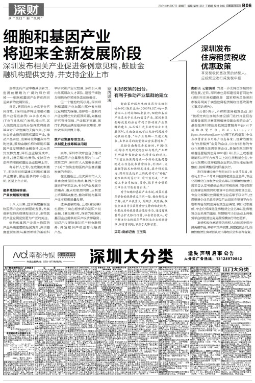 生物医药产业中最具创新力、发展前景最为广阔的细分领域——细胞和基因产业将在深圳迎来新的发展阶段。 日前,据深圳市人大常委会官网信息,《深圳经济特区细胞和基因产业促进条例(征求意见稿)》(下称“《
