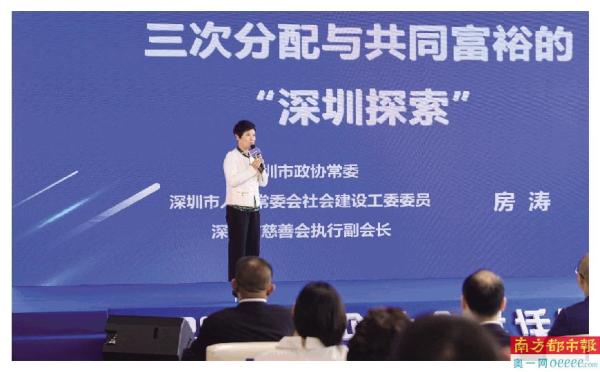 深圳市慈善会执行副会长、深圳市政协常委房涛带来了《第三次分配和共同富裕的“深圳探索”》的主题演讲。8月17日,中央财经委员会第十次会议提出,在高质量发展中促进共同富裕,构建初次分配、再分配、三次分配协调配套的基础性制度安排。