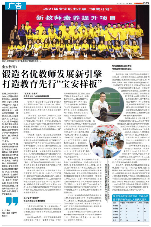 锻造名优教师发展新引擎 打造教育先行“宝安样板”
