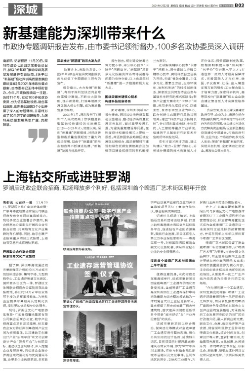 南都讯 记者程昆 11月29日,深圳市政协七届四次常委会议召开,就以“新基建”推动深圳高质量发展进行专题协商。《关于以“新基建”推动深圳高质量发展的建议提案》是2021年市政协重点提案,由市委书记
