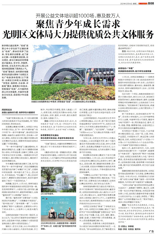 聚焦青少年成长需求 光明区文体局大力提供优质公共文体服务