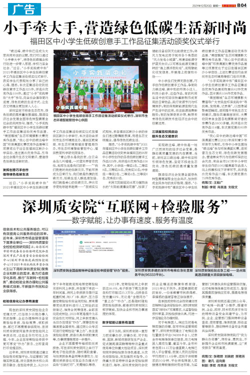 “碳达峰、碳中和已经成为大家共同关注的议题,我们可以通过‘小手牵大手’,将绿色低碳理念和行动进一步带入家庭、学校乃至全社会。”近日,“小手实践碳中和”2021年福田区中小学生低碳创意手工作品征集活