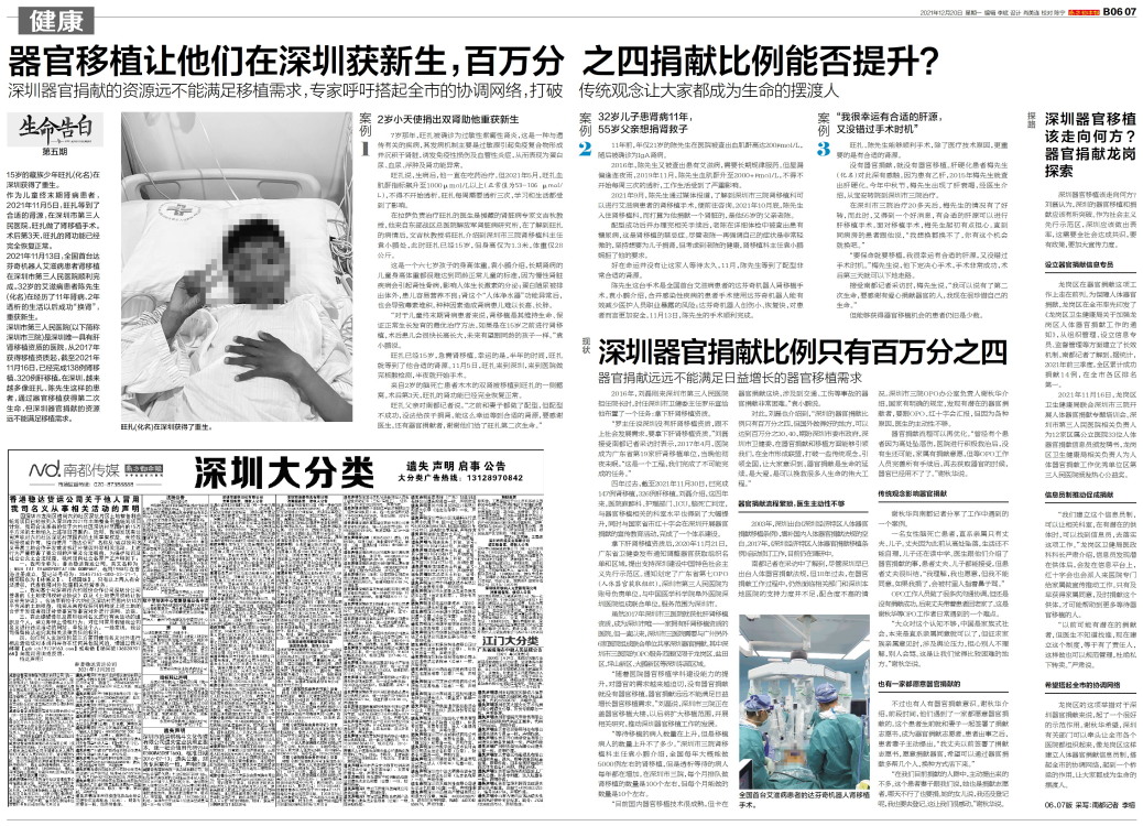 器官移植让他们在深圳获新生,百万分之四捐献比例能否提升?