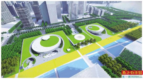 南都记者了解到,湾区书城项目位于粤港澳大湾区核心区域的前海城市新中心,宝安中心区中央绿轴东侧,因其双玉盘的设计理念,被称为“湾区之眼”。项目占地6.6万平方米,首创书城与民俗馆相结合的模式,建筑面积13.1万平方米(含湾区民俗馆1万平方米),高度12米,地上、地下各两层。地上建筑面积3.5万平方米,主要包括主题书店、湾区民俗馆、策展空间、文化交流平台等;地下建筑面积9.6万平方米,主要包括公共阅读、亲子活动体验、剧场、文化发布厅及服务配套等。