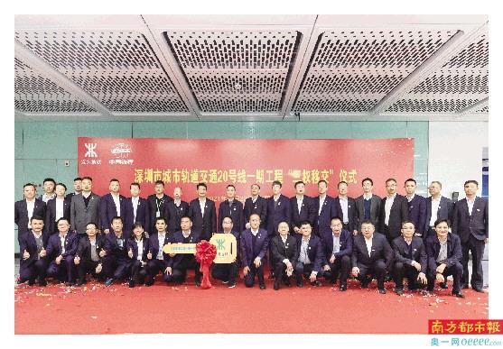 南都讯 记者张艳丽 12月22日上午10时,深圳地铁20号线一期工程在国展北站举行“三权移交”仪式,将工程调度指挥权、属地管理权和设备使用权顺利移交,标志着20号线正式完成工程建设及开通筹备工作,由建设阶段正式转为运营阶段,为开通试运营奠定了基础。
