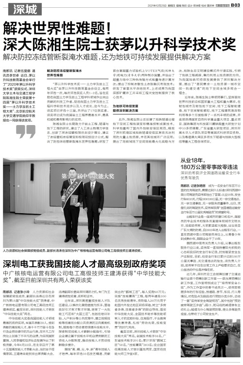 解决世界性难题!深大陈湘生院士获茅以升科学技术奖