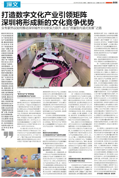 打造数字文化产业引领矩阵 深圳将形成新的文化竞争优势
